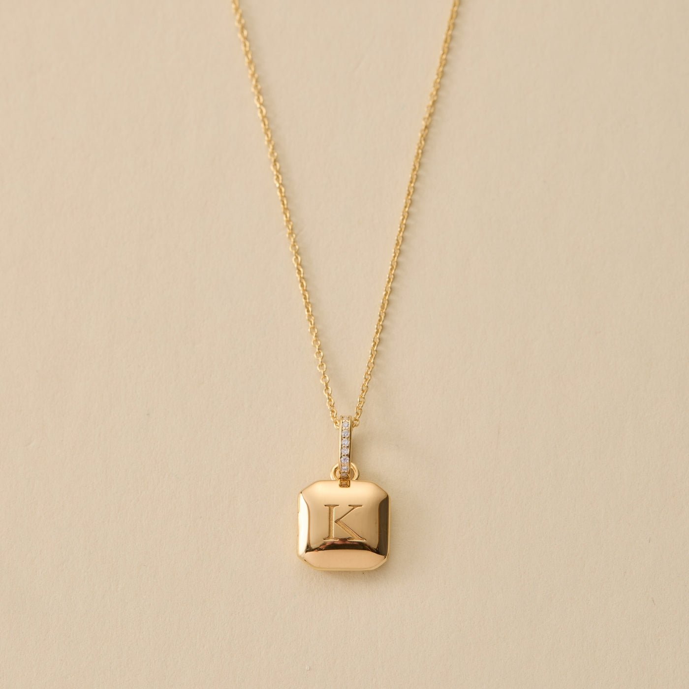 Square Mini Locket Necklace with Pavé Jump Ring
