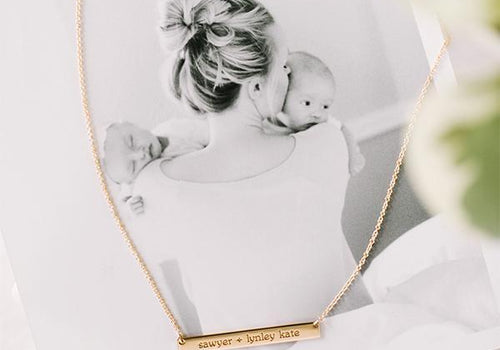 I ordered a personalized Script Skinny Bar necklace in Sterling Silver as a gift to my mom on my wedding day. On one side I put the coordinates of the hospital I was born at, and on the other, I engraved the words “the...
