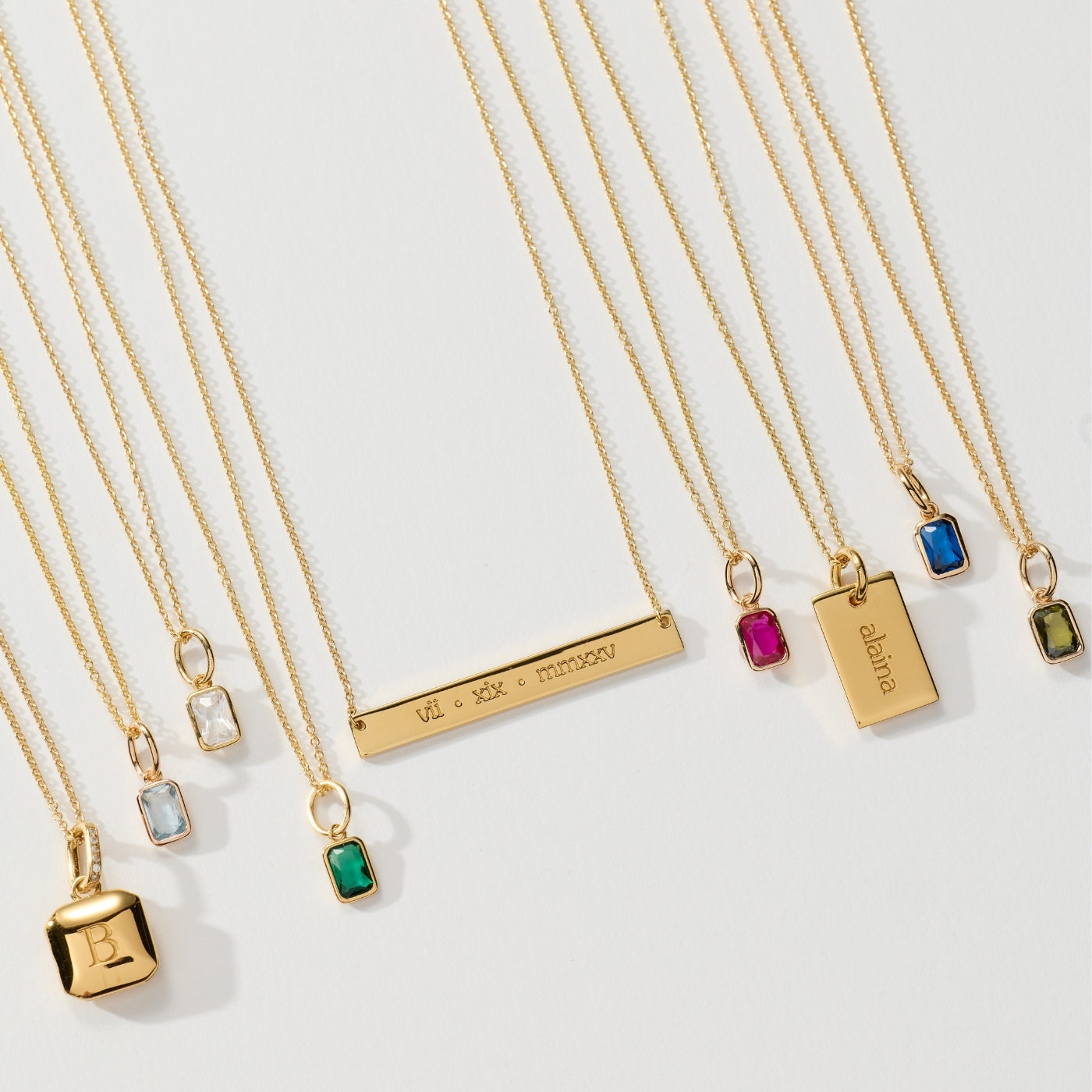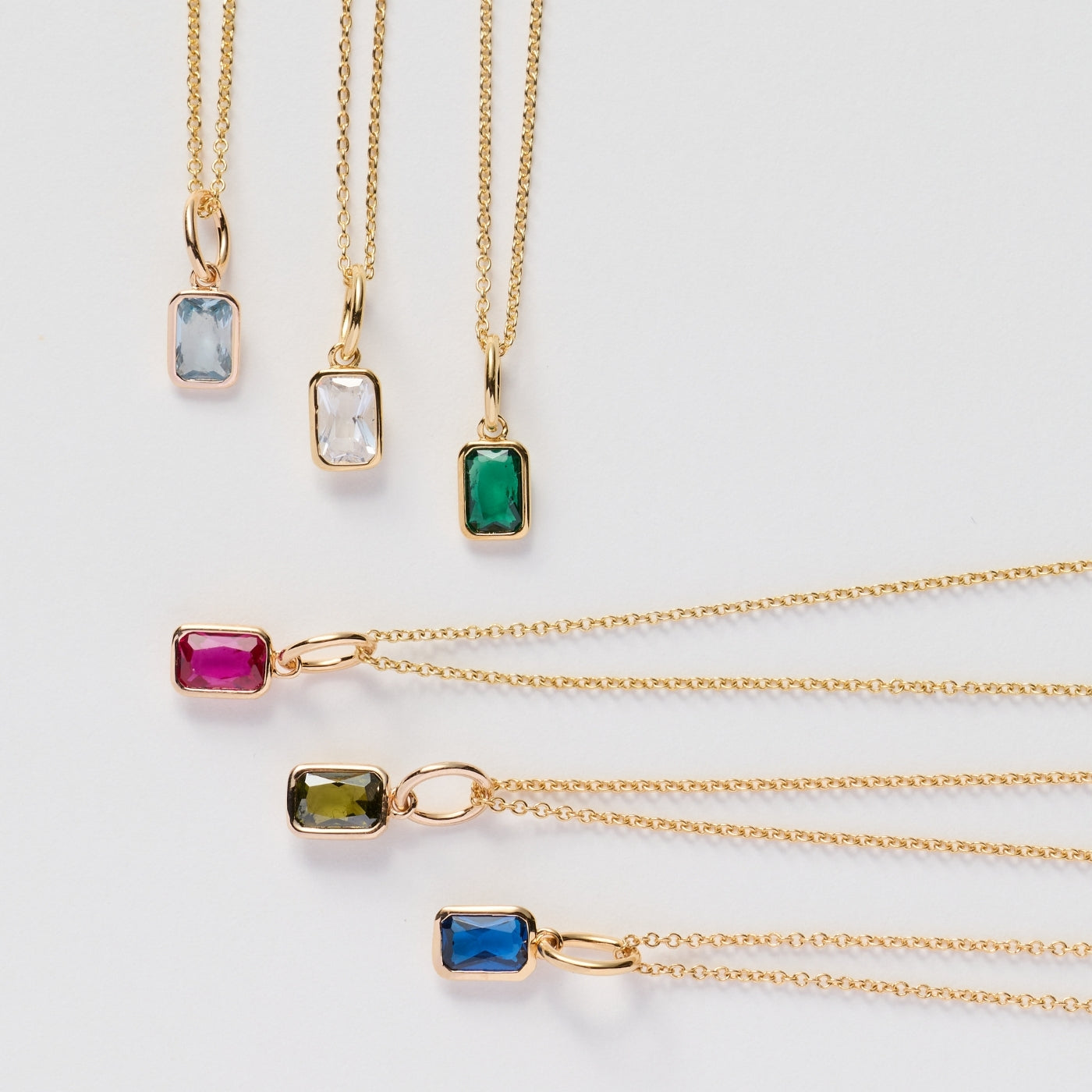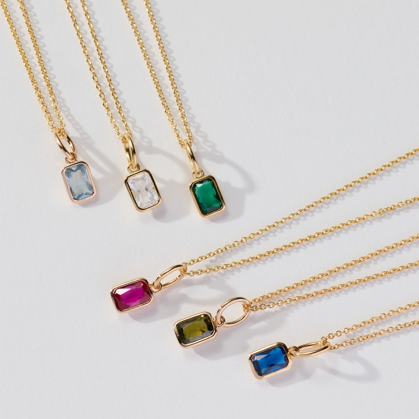 Baguette Birthstone Charm Necklace