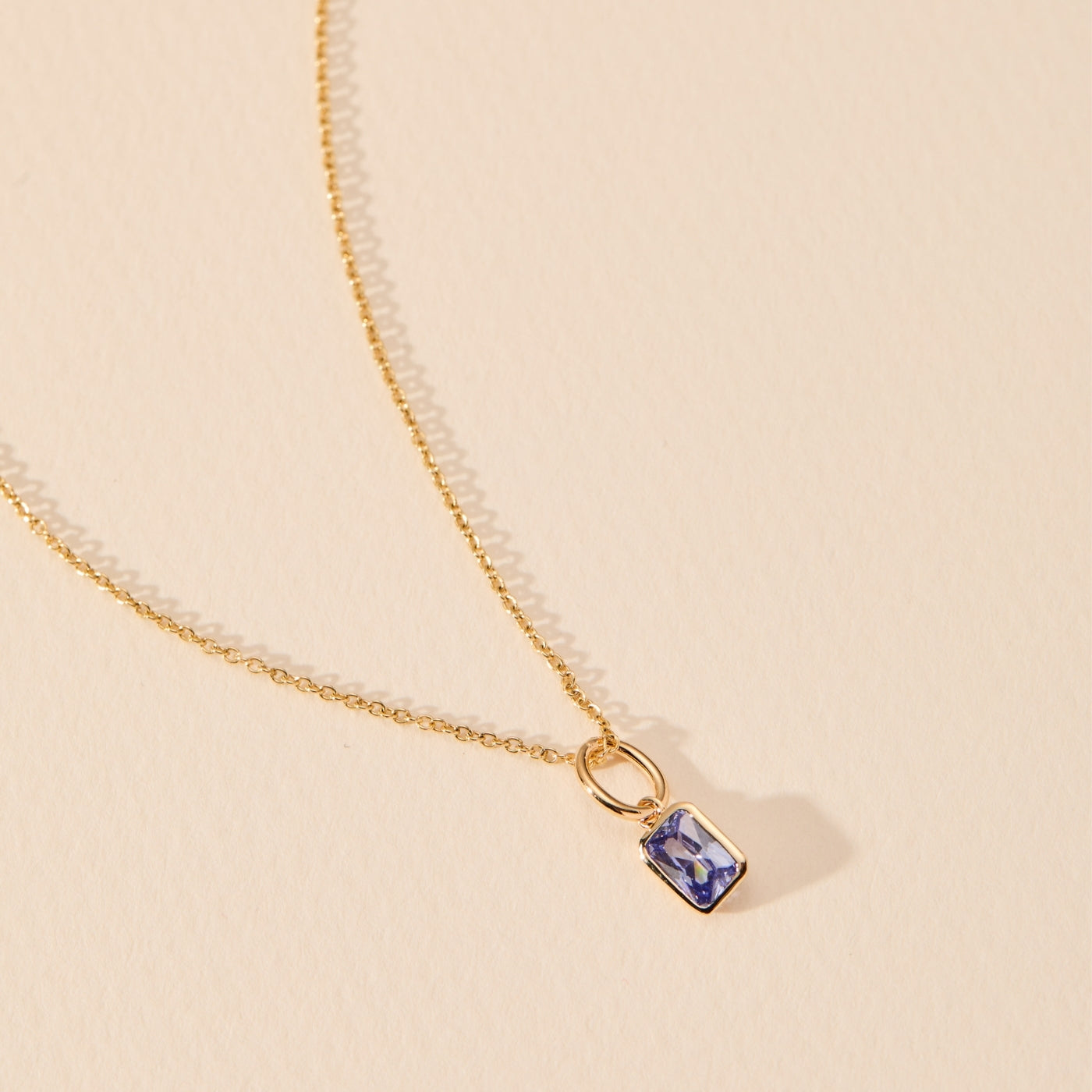 Baguette Birthstone Charm Necklace