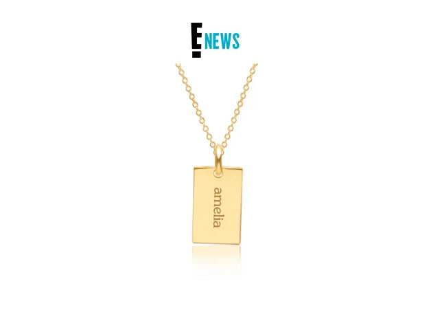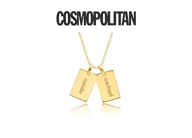 "I wear my Gold Mini Dog Tag Necklace in yellow gold everyday (it comes in rose gold and white gold as well). The first has my spouse’s name and our wedding anniversary date. The other three have my sons’ engravings, their names one side and their birth dates on the other."